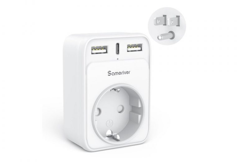💰 Nur 8,99€ statt 13,99€ 📍 Reiseadapter USA Adapter Amerika Deutschland Stecker mit 2USB 1USB C (3A), 4-in-1 Steckdosenadapter Reisestecker…