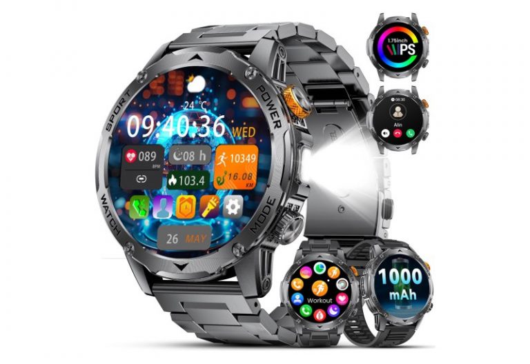 💰 Nur 55,23€ statt 125,99€ 📍 Smartwatch Herren Militär-1000mAh Akku/1.75“ HD Große Display,Smartwatch mit Taschenlampe/Bluetooth Anrufe/130+ Sportmodi,IP68 Wasserdicht Fitnessuhr mit…