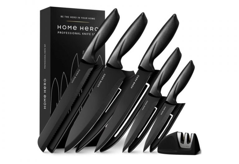 💰 Nur 21,24€ statt 24,99€ 📍 Home Hero Messerset mit Messerschärfer – Scharfe Küchenmesser Set – Messerblock Kochmesser Set Edelstahl…