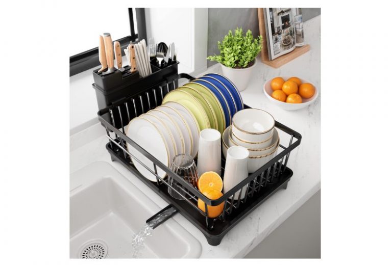 💰 Nur 16,98€ statt 29,99€ 📍 Abtropfgestell Geschirr – platzsparender Abtropfgestell,Geschirrabtropfgestell für die Küchentheke mit Besteckhalter,Küchen-Geschirrständer mit Drehbarem Auslauf, Schwarz…
