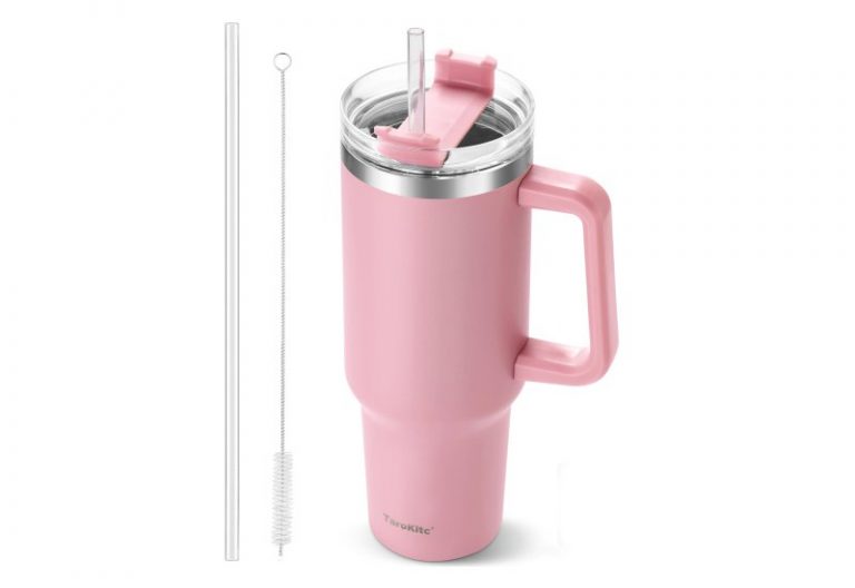 💰 Nur 5,77€ statt 6,79€ 📍 TaroKitc 1.18 l / 40 oz Thermobecher mit Griff und Strohhalm, Doppelwandige Edelstahl-Vakuum-Isolierflasche mit…