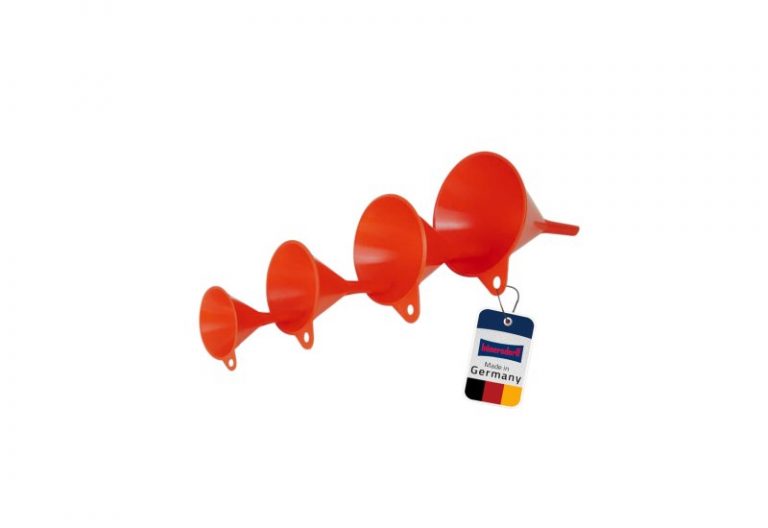 💰 Nur 3,43€ statt 8,99€ 📍 hünersdorff Trichter-Set 4-teilig, Rot | Robuste Einfülltrichter aus bruchsicherem HD-PE mit Entlüftungsrippen & Aufhängeöse…