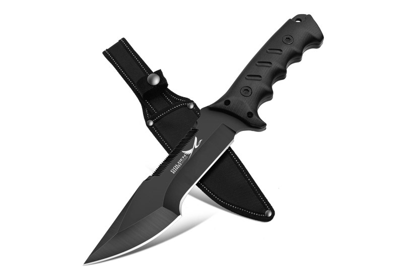 📍 Golden Bird Outdoor Messer Survival Schwarz 2 IN 1 Jagdmesser Feststehende Klinge mit Oxfordscheide – 58HRC Karbonstahl Bushcraft Messer Full Tang Survival Messer mit säge – Geschenke für Männer