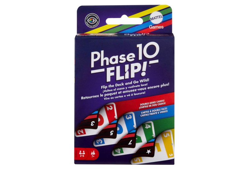📍 Mattel Games Phase 10 Flip Kartenspiel, Kartenspiel für die ganze Familie mit beidseitig bedruckten Karten, mit speziellen Farbphasen für 2 bis 6 Spieler, HYN12