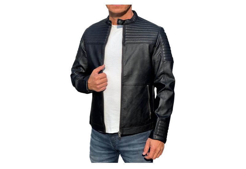 📍 JACK & JONES Herren Kunstlederjacke – Biker Jacke schwarz
