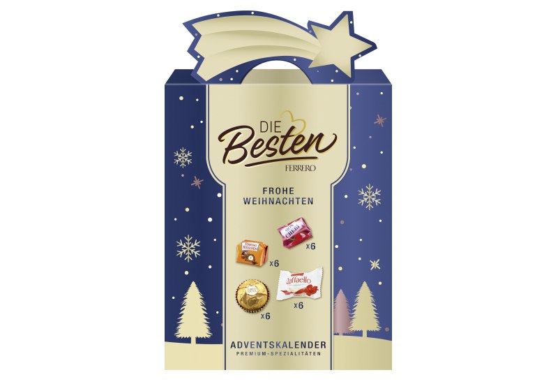 📍 Die Besten Adventskalender 2025 – Große Geschenkbox mit Ferrero Spezialitäten zu Weihnachten – Mon Chéri, Ferrero Küsschen, Rocher & Raffaello – 24 Türchen & personalisierbare Sternschnuppe – 251 g