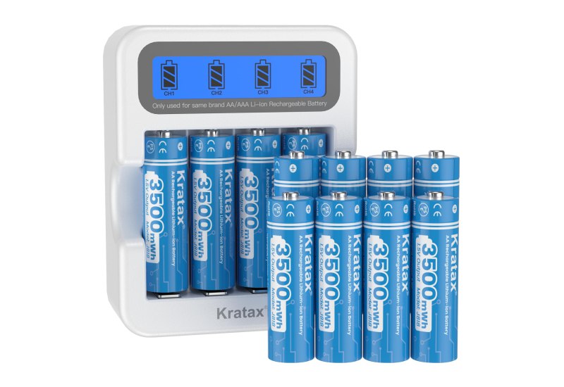 📍 Kratax Lithium AA Akku, 12 Stücke Wiederaufladbare 1,5V Lithium Batterien AA mit 2-Stunden-Schnelllade-LCD-Display-Ladegerät, 3A Entladestrom mit 3500mWh Hoher Kapazität, Langer 1600 Zyklus