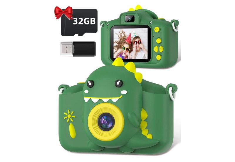 📍 Kinderkamera, Gofunly Kinder Kamera 1080P 2,0-Zoll-Bildschirm Selfie Digitalkamera mit 32GB-Karte für 3-12 Jahre Jungen Mädchen Geburtstagsgeschenk Weihnachten Spielzeug Grün Dinosaurier
