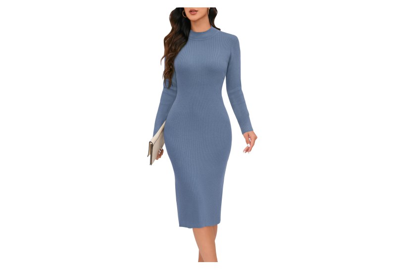 📍 Arach&Cloz Strickkleid Damen Herbst Langarm Elegant Kleid Rundhals Winterkleid Lang