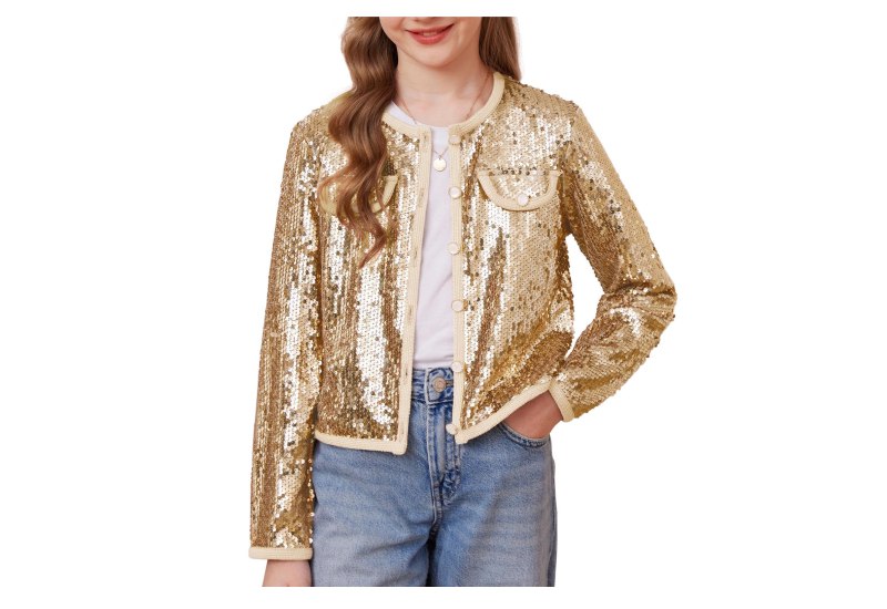 📍 GRACE KARIN Mädchen Pailletten Jacke Langarm Rundhals Glitzer Bolero Festlich