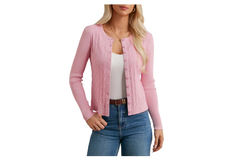 📍 GRACE KARIN Damen Strickmantel Elegante Rundhals Langarm Casual Kurz Strickjacke Cardigan Sweater