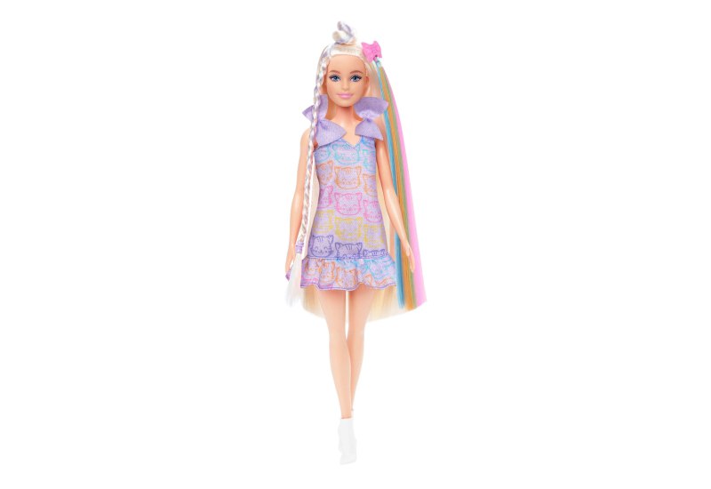 📍 Barbie Fun & Fancy Puppe mit Accessoires, Modepuppe mit extra langem blondem Haar und 2 Looks, inklusive silberfarbenem Metallic-Kleid und Haarverlängerung, JCT72, [Mehrfarbig]