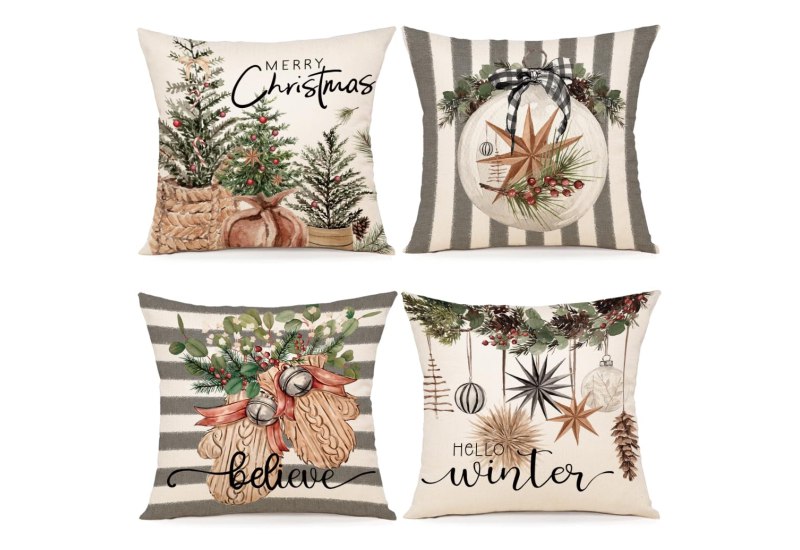 📍 ZWJD Kissenbezug Weihnachten 45×45 4er Set Leinen Kissenbezüge Weihnachtskissen Christmas Dekokissen Kissenhüllen für Deko Weihnachten Sofa Schlafzimmer Couch Kissenbezug 45×45 cm A294