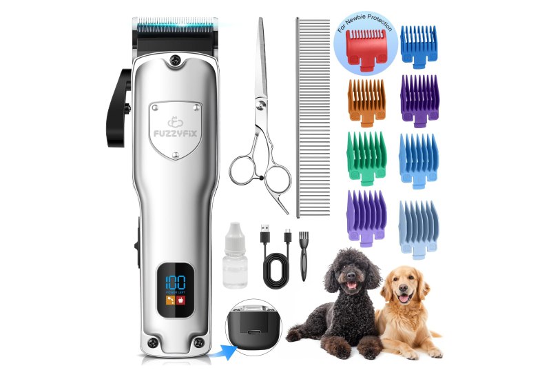 📍 FuzzyFix Leise Hundeschermaschine Dichtes Fell, Profi Schermaschine Hund aus Edelstahl,Professionelle Hunde Haarschneidemaschine Hunderasierer Tierhaarschneidemaschine für Dickes Lockiges Tierhaare