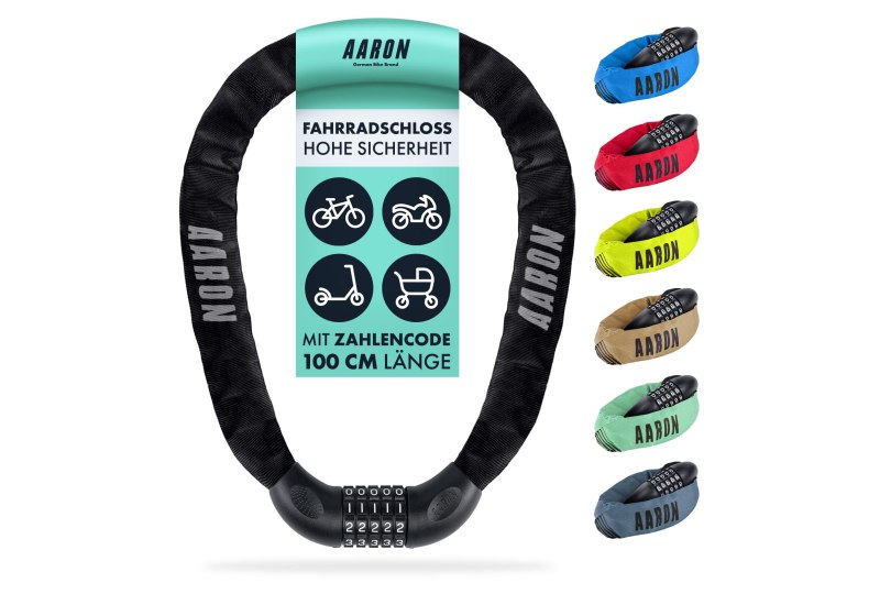 📍 AARON Lock One Fahrradschloss mit 5-stelligem Zahlencode, Kettenschloss aus Stahl und hoher Sicherheitsstufe, Schloss für für E-Bike, Mountainbike, Trekkingrad, Tourenrad, Rennrad in schwarz