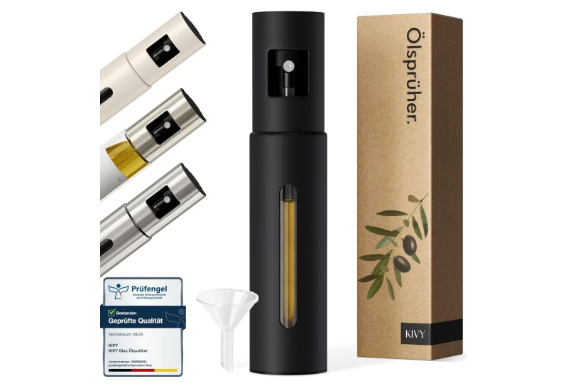 📍 KIVY Ölsprüher aus Edelstahl & Glas – Öl-Sprühflasche – Sprüher für präzise Dosierung – Für Speiseöl & Essig – inkl. Trichter