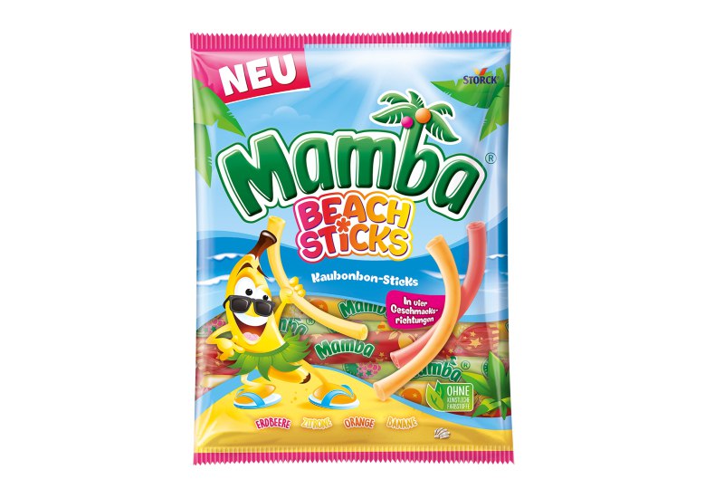 📍 Mamba Beach Sticks – 1 x 160g – Fruchtige Kaubonbon-Stangen in vier verschiedenen Sorten – Süßigkeiten Mix einzeln verpackt