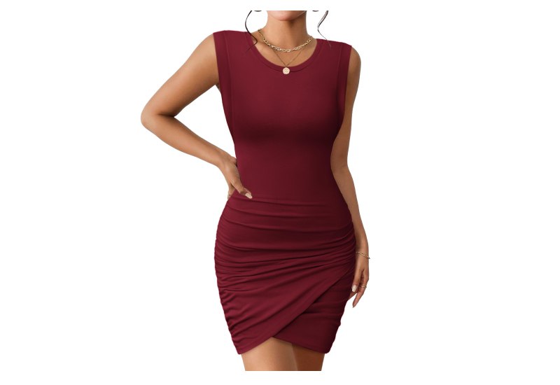 📍 Zeagoo Damen Partykleird Ärmellos Rundhals Sexy Rüschen Sommerkleid Bodycon Cocktailkleid Slim fit Mini Kleid