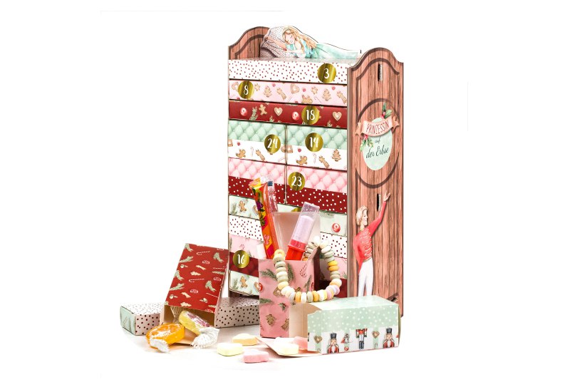 📍 Papierdrachen Adventskalender 2025 – Prinzessin auf der Erbse – Bett zum Zusammenbauen – wiederverwendbarer Schachtelkalender – mit Boxen zum Befüllen
