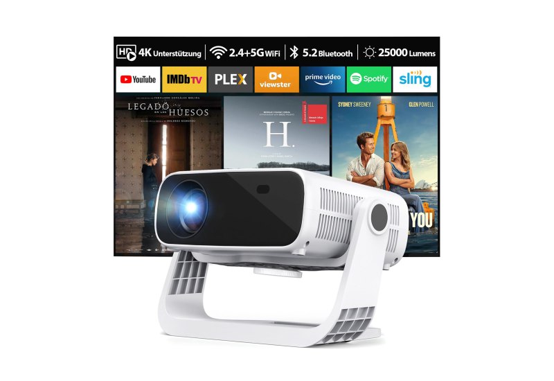 📍 2025 Neuer Upgraded Full HD 1080P Beamer, 25000 Lumens, 4K Unterstützung, Android 11, WiFi 6& Bluetooth 5.2, automatische Trapezkorrektur, 120° schwenkbarer Heimkino Beamer