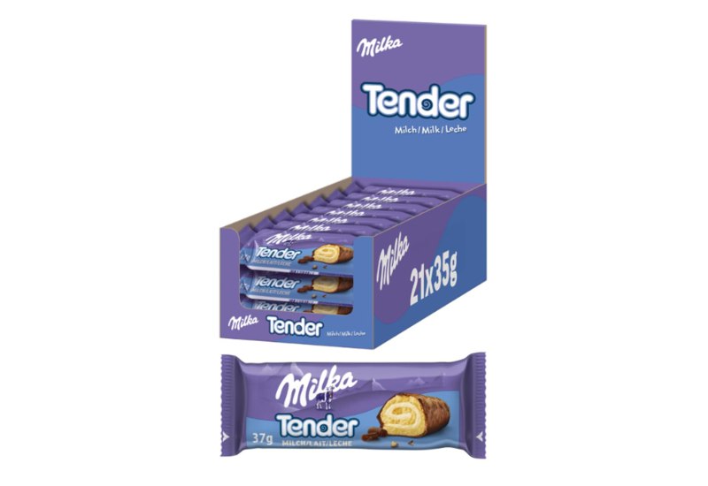 📍 Milka Tender Milch – Biskuit-Rolle mit feiner Milchcrème-Füllung, umhüllt von Alpenmilch-Schokolade – 21 x 35g