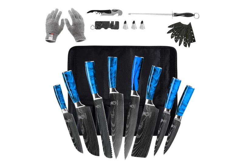 📍 FULLHI Messer Set, 14pcs japanisches Messer Set, Mehrfarbige Premium deutsche Edelstahl Küchenmesser Set