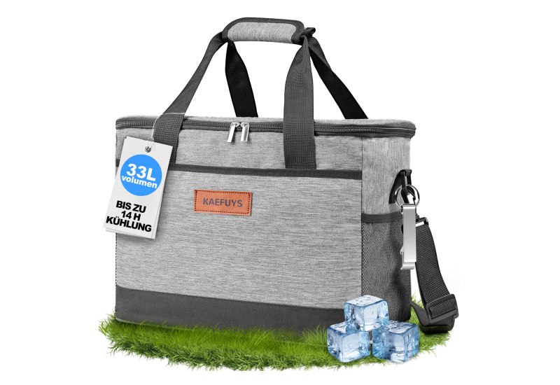 📍 Kühltasche 33L+14h Kühlung Thermoisoliert Tragbar Faltbar Wasserdicht Groß Picknicktasche für Einkaufen Auto Büro Camping Outdoor Reisen Lebensmitteltransport Proviant Familie Grillen