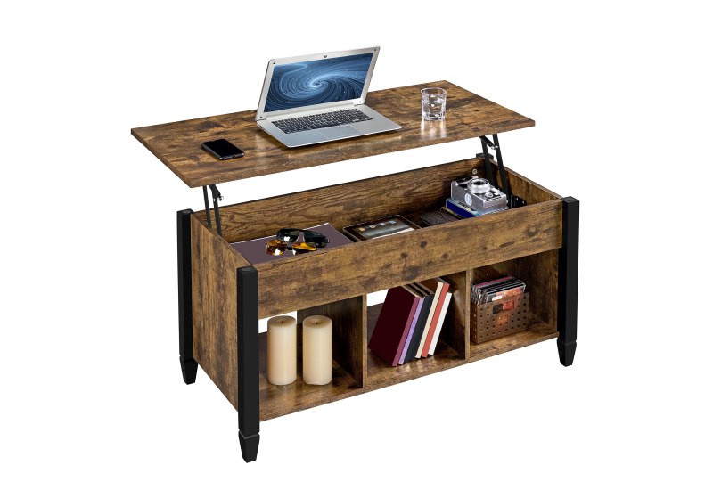 📍 Yaheetech Couchtisch höhenverstellbar Kaffeetisch mit Hebeplatte Hubtisch versteckter Stauraum Beistelltisch aus Holz Sofatisch für Wohnzimmer Rostbraun
