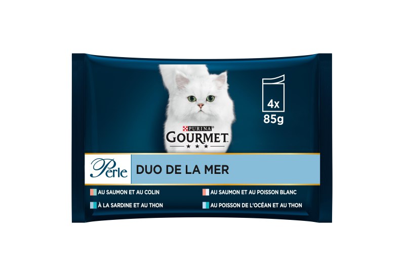 📍 GOURMET | Perle | Duo des Meeres | ausgewachsene Katze | Lachs und Colin, Sardine und Thunfisch, Lachs und Weißfisch, Thunfisch und Ozeanfisch | Frischebeutel | 12 x (4 x 85 g)