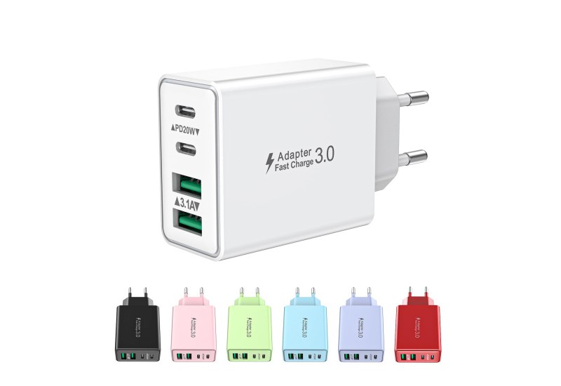 📍 USB C Ladegerät, 4-Ports USB Stecker Schnellladegerät Mehrfach Netzteil USBC Fast Charger PD Power Adapter Ladestecker USB Schnellladen für iPhone 16 15 14 13 12 11 Pro Max, iPad, Samsung,Handys