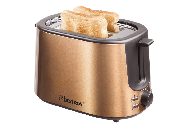 📍 Bestron Toaster mit 2 Röstkammern, Krümelschublade und Brötchen-Röstaufsatz, 1.000 W, Edelstahl in Kupfer-Optik