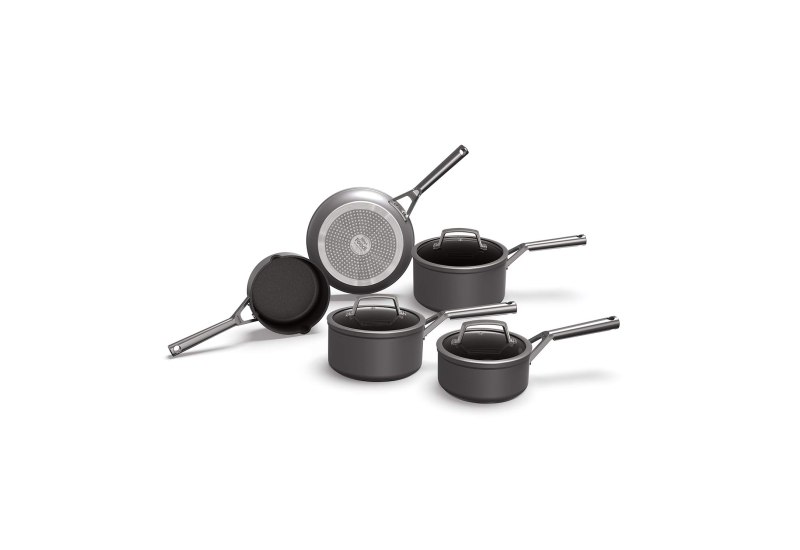 📍 Ninja Foodi ZEROSTICK 5-teiliges Pfannenset mit Glasdeckeln, antihaftbeschichtet, hart eloxiertes Aluminium, induktionsgeeignet, backofen- und spülmaschinenfest, Edelstahlgriff, Grau, C35000EU