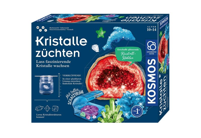 📍 KOSMOS 645601 Kristalle züchten – Lass faszinierende Kristalle wachsen – Komplett-Set, glitzernde Blitzkristalle, Schatztruhe, Deko, Experimentierkasten – Kinder ab 10-14 Jahre
