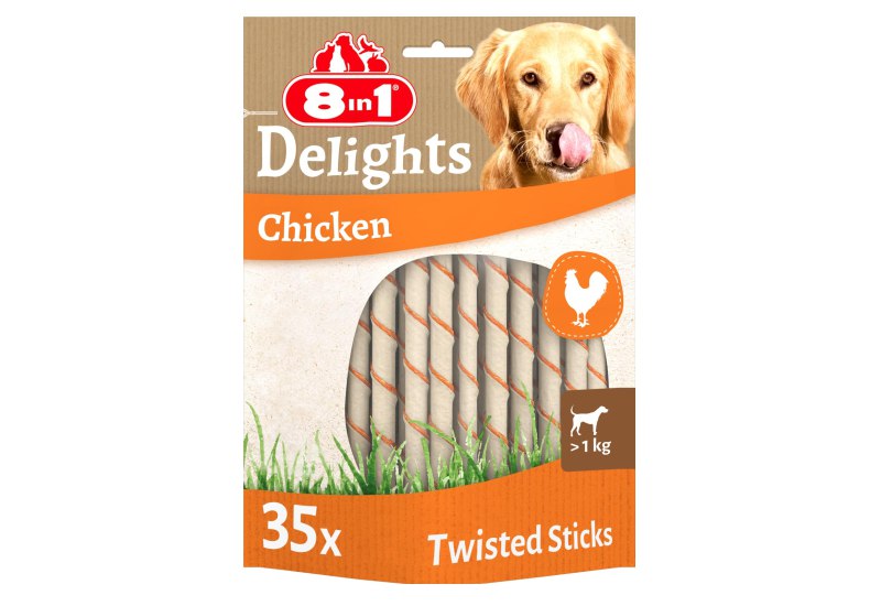 📍 8in1 Delights Chicken Twisted Sticks – gesunde Kaustangen für Hunde, hochwertiges Hähnchenfleisch eingewickelt in Rinderhaut, 35 Stück