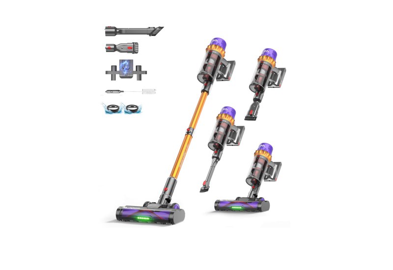 📍 AlloyMove Akku Staubsauger, 50000Pa/550W/80Mins Staubsauger Kabellos mit LED Display und Anti Tangle Bürste, 7-stufiges Filtersystem, Für Tierhaare Hartböden Teppich A05