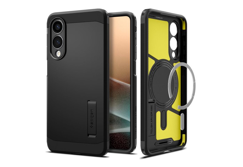 📍 Spigen Tough Armor (AI) MagFit für Samsung Galaxy S25 Edge Hülle mit [Stoßdämpfendes Pad], [verstellbarem Kickstand], MagSafe kompatibel –Schwarz
