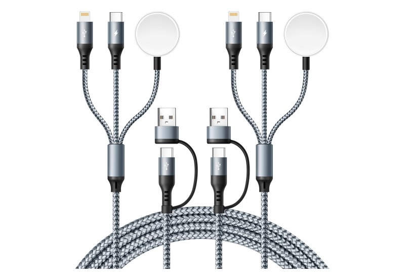 📍 Multi USB A/C Ladekabel,3 in 2 Multi Ladekabel für App-le Watch Ladekabel,Aktualisiert für App-le Watch-Ladegerät,Nylon-geflochtenes Magnetisches kabelloses Ladekabel für iWatch/iPhone-1.8M