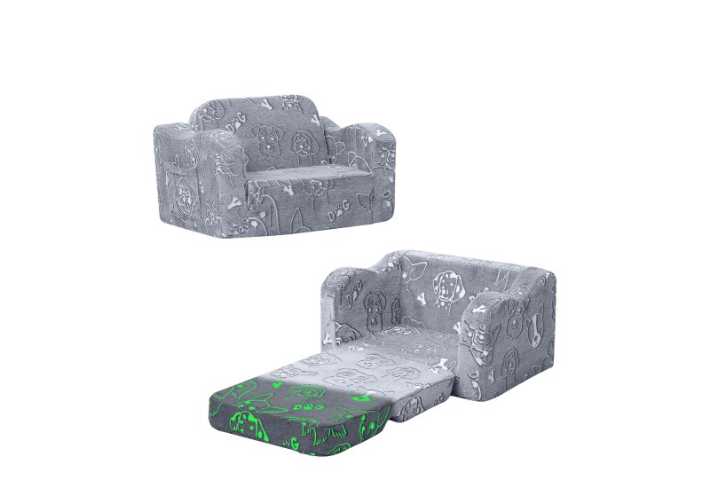 📍 MeMoreCool Kindersofa Ausklappbar, 2-in-1 Kleinkinder Schlafsofa, Kindersessel mit Schlaffunktion, Mini Couch für Kuschelecke Kinderzimmer, Fancy Spielsofa für Mädchen und Jungen, Grau Hund