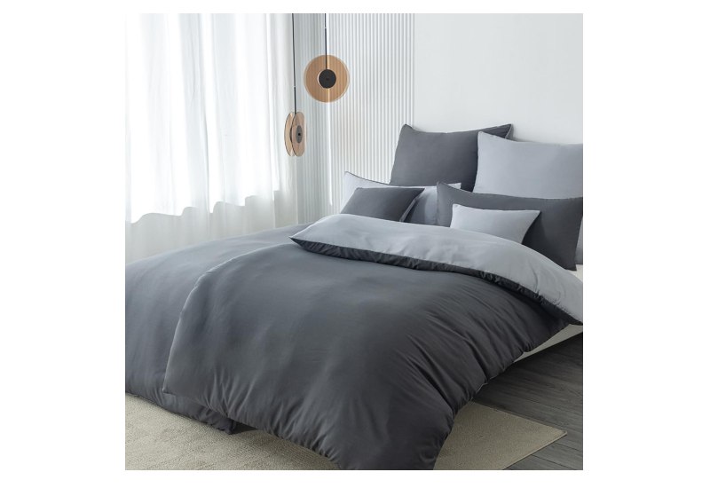 📍 Nesture Bettwäsche 135×200 4teilig Anthrazit/Grau Bettwäsche Sets Microfaser Wendebettwäsche 135 x 200 4tlg, weich & bügelfrei Bettbezug 2er + Kissenbezug 2er 80x80cm mit Reißverschluss