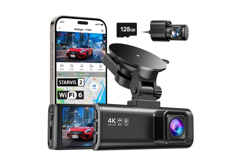 📍 REDTIGER Dashcam Auto Vorne Hinten 4K/2,5K mit STARVIS 2, Dash Cam Auto Kamera 3,18″ IPS-Bildschirm, kostenlose 128-GB-Karte,5.8GHz WiFi, GPS, 170°Weitwinkel WDR, Unterstützt 256 GB Max(F7NP)