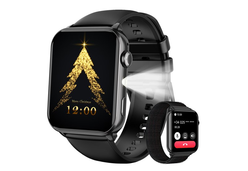 📍 Smartwatch Herren Damen, 1,91“ HD Touch Fitnessuhr mit LED Taschenlampe & Bluetooth Anrufe, 100+ Sportmodi Fitness Tracker mit SpO2-Schlaf-Schrittzähler-2 Armbändern, IP68 Wasserdicht für iOS Android