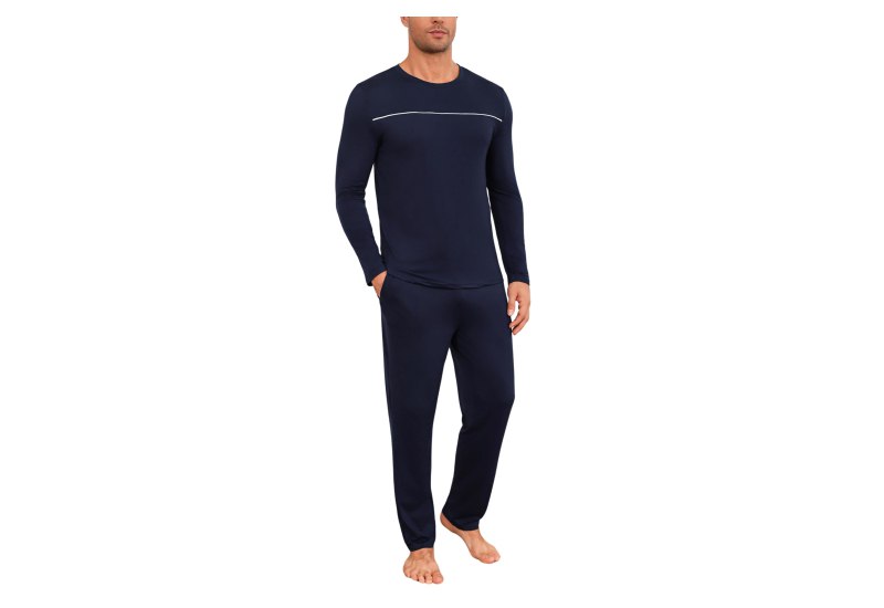 📍 Marvmys Herren Schlafanzug Lang Winter Baumwolle Pyjama Set Rundhals Taschen Verstellbarer Bund Bequeme Nachtwäsche
