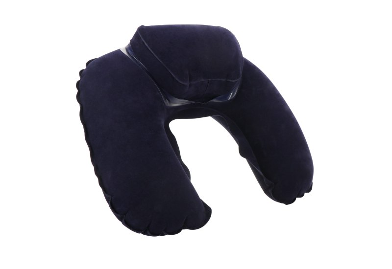 📍 com-four® 1x Aufblasbares Nackenstützkissen – Praktisches Nackenhörnchen zum Aufpusten – Ideales Reisekissen für unterwegs – mit erhöhter Nackenstütze (Erhöht – 1 Stück – dunkelblau)