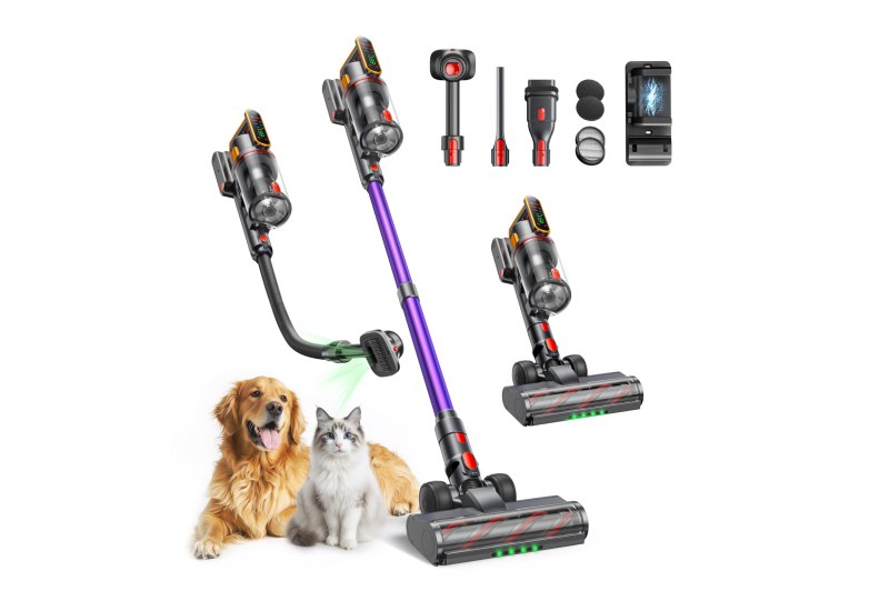 📍 Fieety Akku Staubsauger 600W/50kPa/65Min, Staubsauger Kabellos mit Tierpflegebürste, 1M Schlauch, Wandladestation, 8-Schicht-Filtration Aromatherapie Ultraleise für Tierhaare, Teppich, Hartböden, Auto