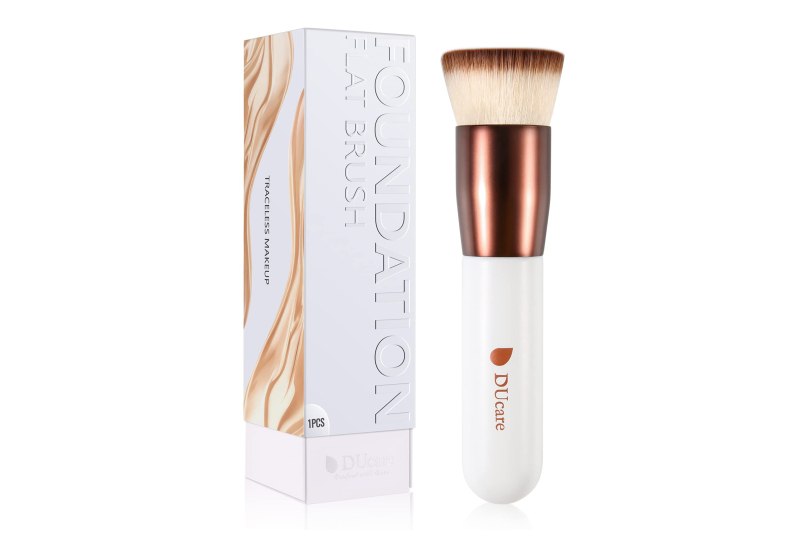 📍 DUcare Foundation Brush Make Up Pinsel Flat Top Kabuki Brush, Synthetic Professional Liquid Blending Mineral Powder Makeup Tools, Roségold/Weiß