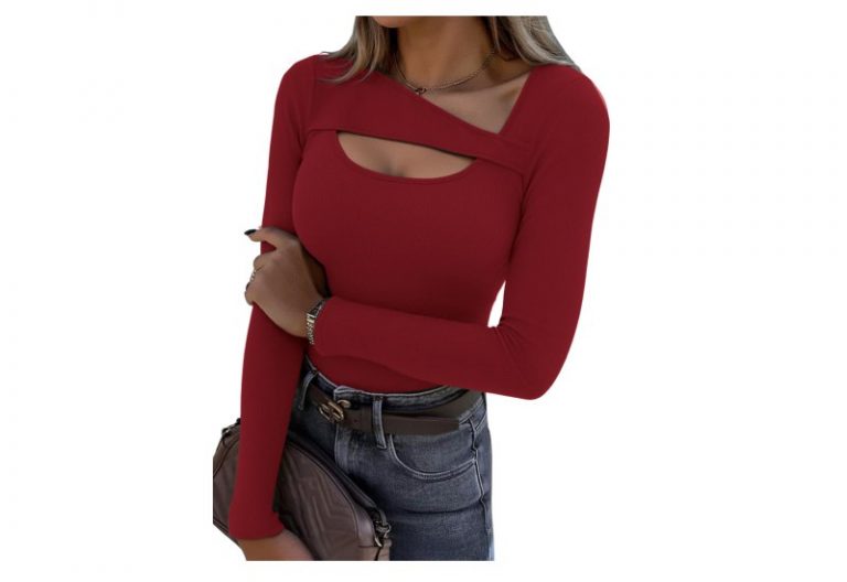 💰 Nur 11,49€ statt 21,99€ 📍 Damen Langarmshirt Asymmetrischer Ausschnitt Oberteile Langarm Gerippt Basic Tee Shirts Slim Fit Elegant Pullover…