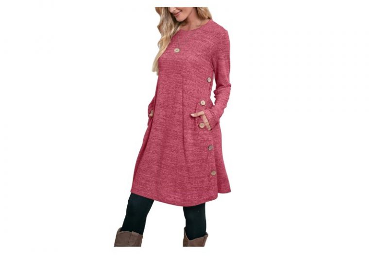 💰 Nur 19,98€ statt 35,99€ 📍 Aokosor Strickkleid Damen Langarm Kleider Pulloverkleid für Damen Tunika Kleid Jumper Kleid mit Knöpfen…
