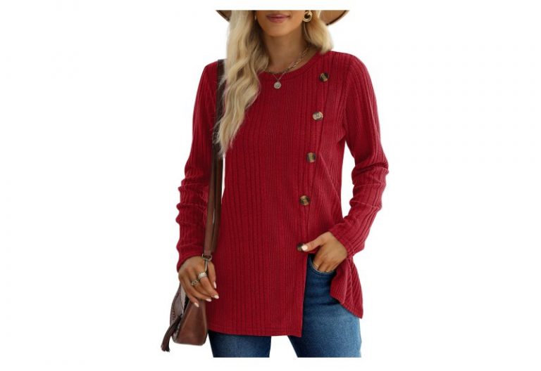 💰 Nur 6,99€ statt 22,39€ 📍 XIEERDUO Pullover Damen Herbst Winter Strickpullover Damen Rundhals Langarmshirt Damen Schlitz Tunika Top Damen…