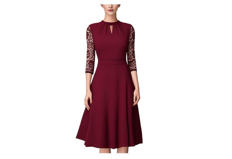 💰 Nur 9,99€ statt 20,30€ 📍 TANTOMI Cocktailkleid Damen Kleider Elegant Spitze, SchöNe Hochzeit Abendkleider Vintage Rockabilly Kleid Damen, Weinrot…